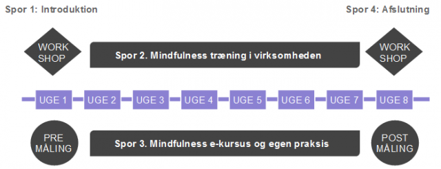 Mindfulness Forløb følger 4 spor og løber over 8 uger: